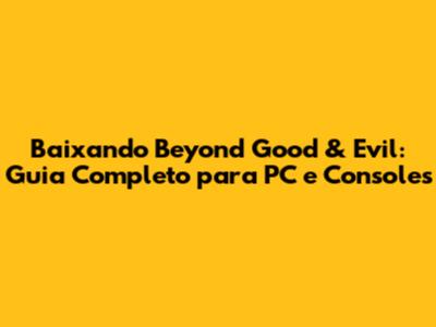 Olá, pessoal! Se você está aqui, provavelmente é fã do clássico Beyond Good & Evil e está procurando saber como baixar Beyond Good & Evil para reviver essa aventura incrível ou experimentar pela primeira vez. Preparei um guia completo para você, cobrindo as melhores opções para PC e consoles, garantindo que você possa aproveitar esse jogo fantástico sem problemas. Vamos lá?