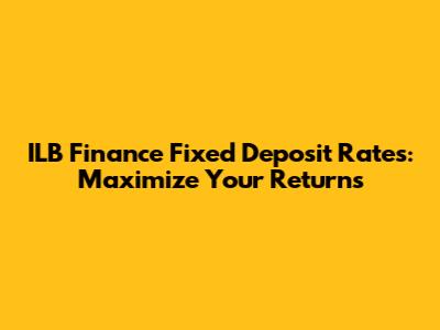 ILB Finance Fixed Deposit Rates: Your Guide To High Returns