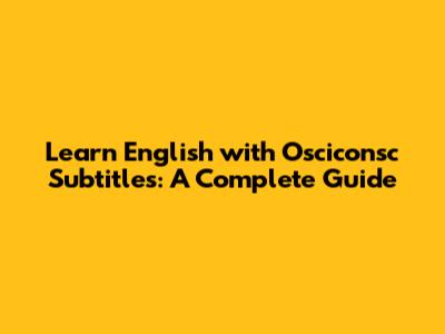 Learn English With Osciconsc Subtitles: A Complete Guide