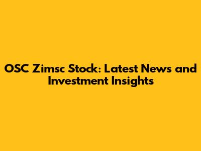 OSC Zimsc Stock: Latest News And Investment Insights