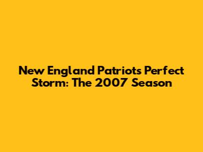 Patriots' Perfect Storm: The 2007 Season